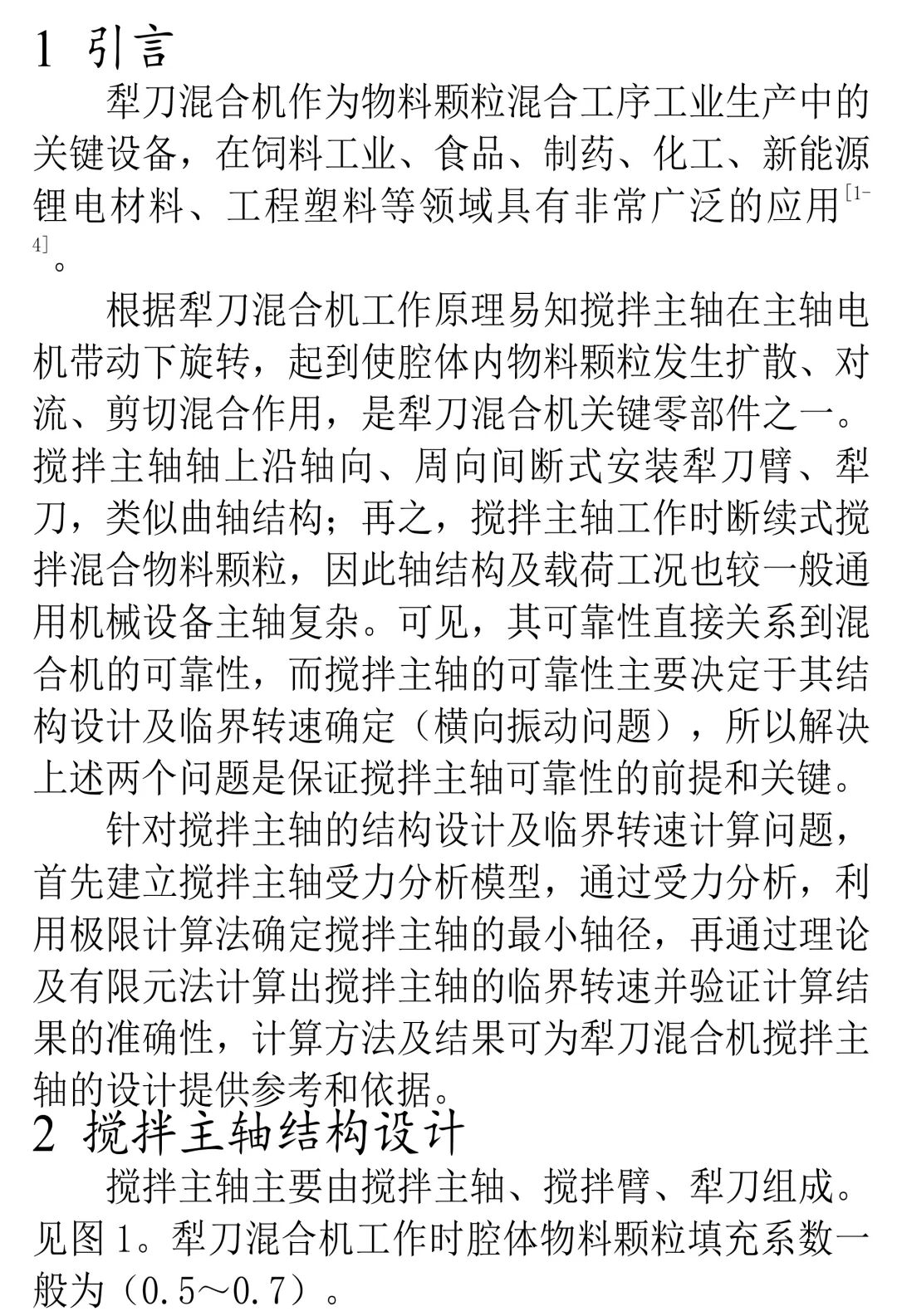 犁刀混合机搅拌主轴结构设计及临界转速计算